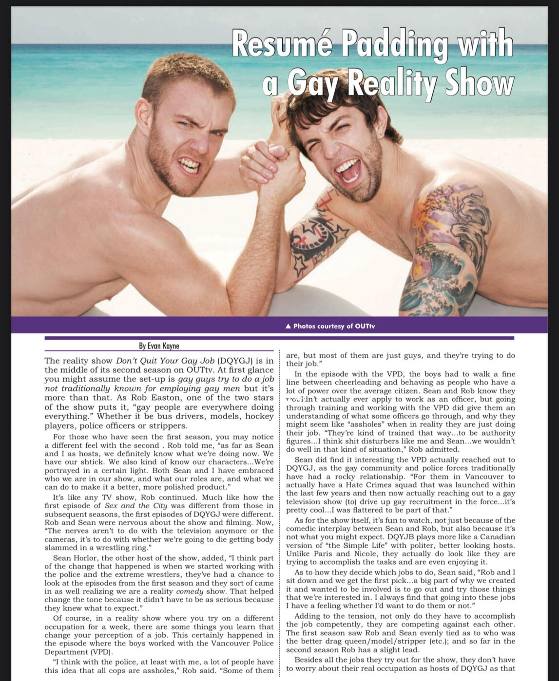Don’t Quit Your Gay Job was a hit unscripted comedy series that ran for five seasons on OUTtv in Canada and Europe, and on HereTV in the United States. Each episode explored queer identity through immersive work challenges through immersive work challenges that pushed the limits of representation (and good taste) on TV.