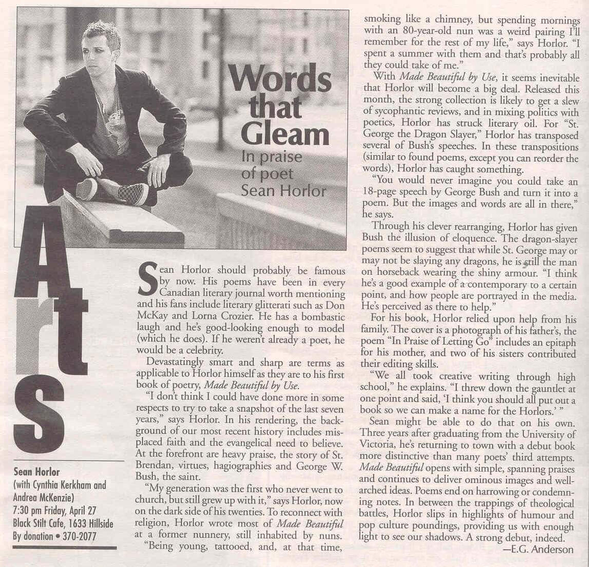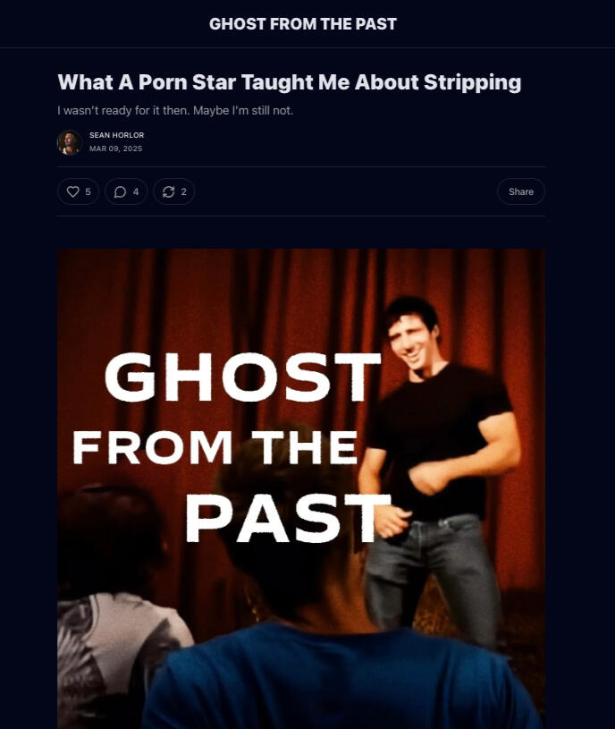 Sean Horlor is filmmaker and writer based in Vancouver, Canada. His documentaries — SATAN WANTS YOU (SXSW) and SOMEONE LIKE ME (National Film Board of Canada) — have screened globally to (mostly) critical acclaim.He runs Nootka Street Film Company with fellow filmmaker Steve J. Adams. Horlor is the author of MADE BEAUTIFUL BY USE (Banff Writing Studio '04, Canada Council for the Arts '06). He's also the former host and creator of the reality TV series DON'T QUIT YOUR GAY JOB — which is exactly the kind of show you're imagining after reading that title.His practice spans film, television, creative nonfiction, and poetry. He also writes essays on memory and the stories we tell ourselves about the past (translation: the absolute worst skeletons in his closet) at Ghost From The Past on Substack.